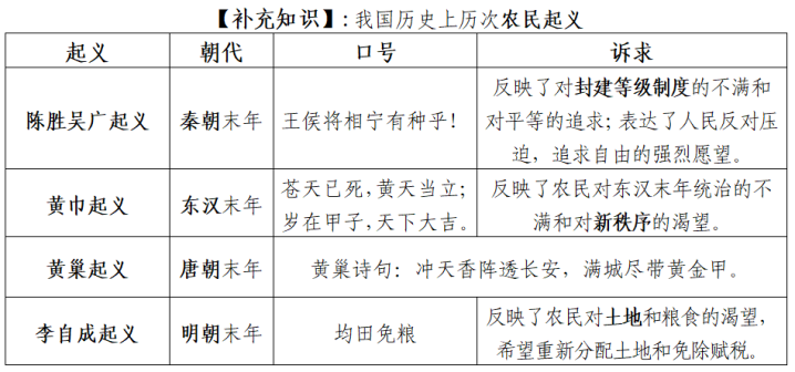 【补充知识】:我国历史上历次农民起义